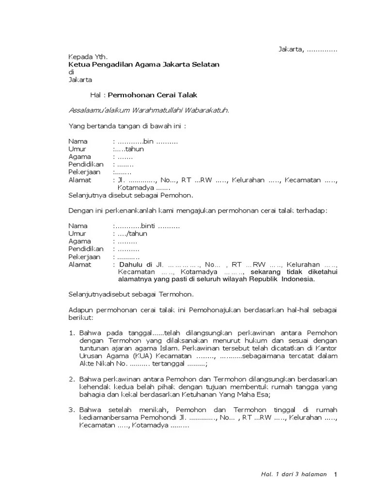 15, format cerai gugat ghaib ghaib (hilang) 2 tahun/lebih, klik disini. Jadi, bagi istri yang berstatus sebagai penggugat, maka surat yang diajukan disebut dengan surat gugatan cerai talak, sebaliknya sang suami yang . Surat gugatan cerai yang jelas dan memuat alasan secara terperinci sebanyak 4 lembar. Format cerai talak hadhanah ghaib (hilang) 2 tahun/lebih. Fotocopy ktp pemohon/penggugat (1 lembar) · 5.